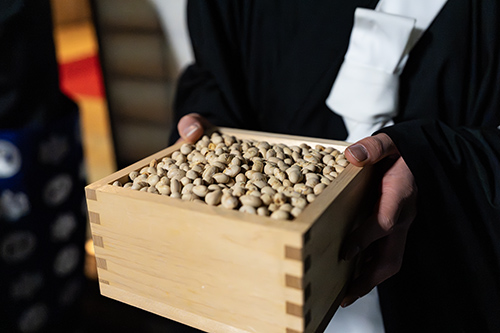 最後は正門が開かれ、一人ずつ「鬼は外(そと)!!」と言いながら、門の外へ豆を投げて終了。各部屋に置かれた豆は翌日に回収します。豆は「魔滅(まめ)」という意味もあり、通常の豆まきは鬼を追い払うものですが、その昔、古い習俗が残る地域ではとても変わった豆まきをしていたのだとか。