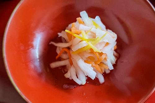 令和8年2月22日、当院の精進料理を監修いただいております大阪の料亭『味吉兆』による精進料理研修会が行われました。今回の研修では、精進春巻、梅酢の大根なます、干柿の白餡包みなどの料理をご考案いただきました。料理は清浄心院、春の精進料理として今後お楽しみいただけます。また、本年の精進料理料理会は11月15日、16日に予定しています。詳細はまた改めてホームページにてご案内いたします。