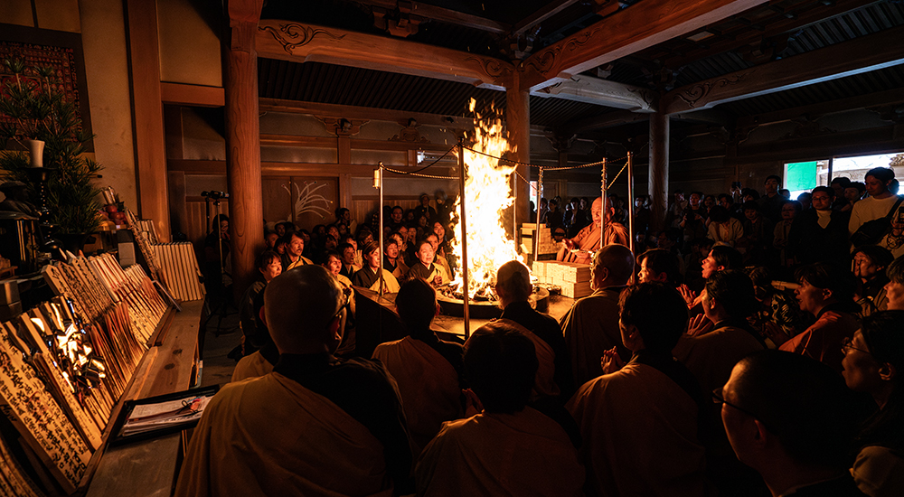 清浄心院の大きな特徴は毎日護摩行を執行しているお寺ということです。毎日午後1時から鳳凰奏殿にて行いますのでぜひ参加されてください。チェックイン前でも、翌日でもどちらでも構いません。祈願を書いた護摩木を持ち、炎に投じていただくことができます(状況によってできない日は僧侶が代わりに投入)。